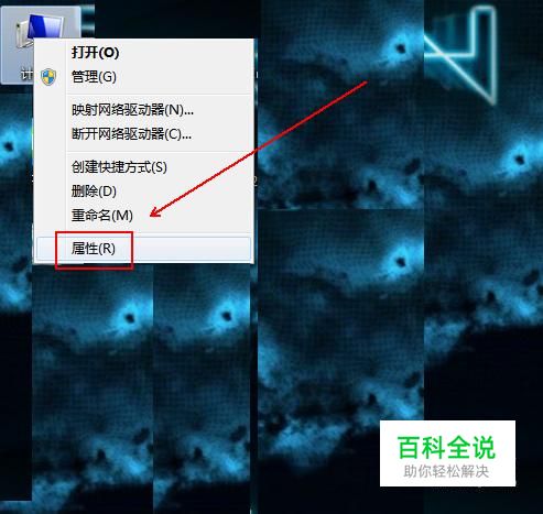 在电脑桌面上右击“计算机”图标,在弹出的菜单列表中选择“属性”选项。