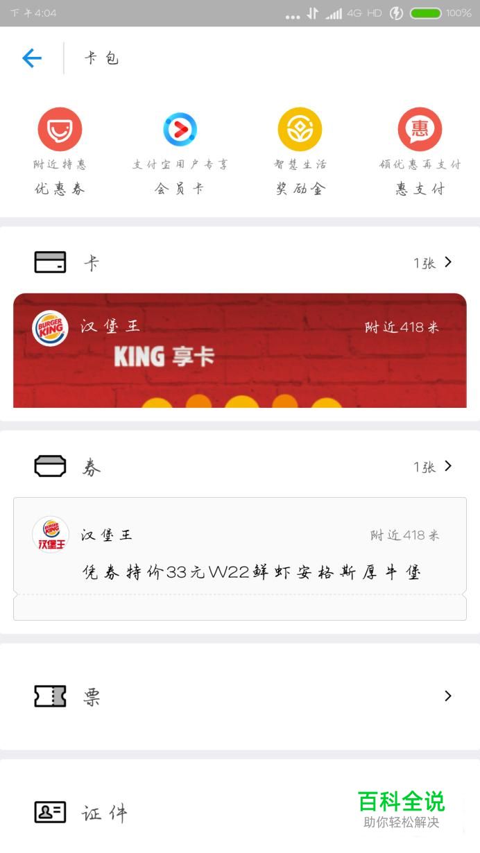 点开后你会发现有4个部分,分别为卡、劵、票和证件