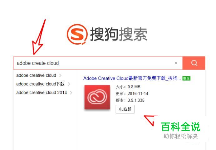 搜狗搜索:Adobe Creative Cloud,为什么要使用搜狗搜索呢?因为她这里面有直接的下载按钮,如图。