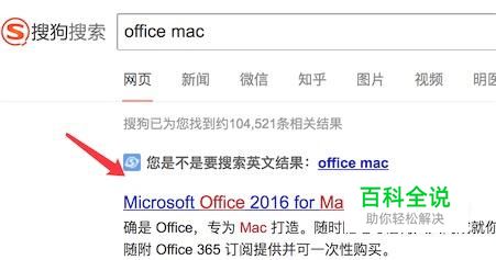 打开搜狗搜索,输入office mac,找到结果后,点击打开。