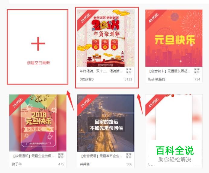 我们在这里可以新建一个空白画册,也可以选择已有模板,如图。