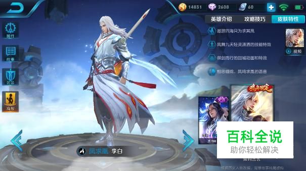 王者荣耀游戏中大部分英雄的皮肤玩家都可以在商城→皮肤页面通过点券购买获得,而李白凤求凰的皮肤目前只能在限时的时间推出。