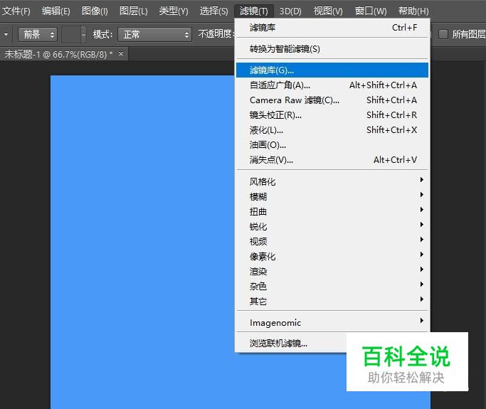 使用油漆桶工具填充背景色后,点击滤镜中的滤镜库命令。