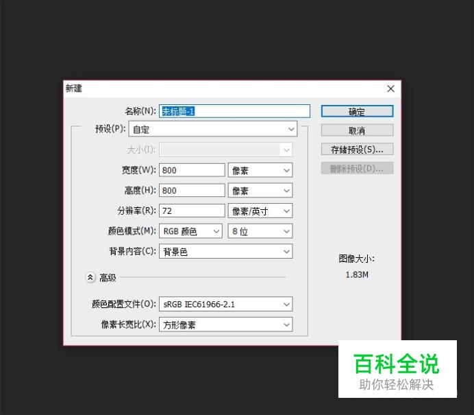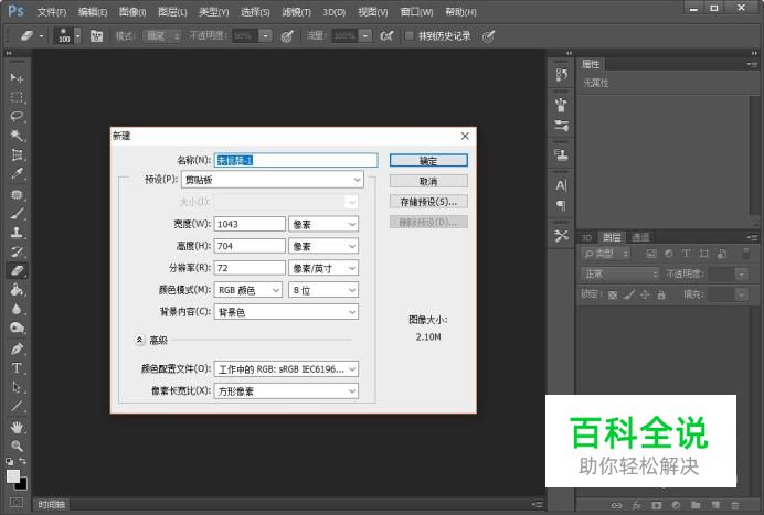 新建一块画布,画布的背景设置为白色,其它设置使用默认值。