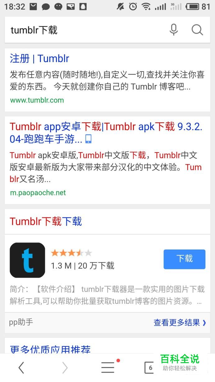 打开浏览器后在搜索栏搜索tumblr下载,就可以看到tumblr软件。