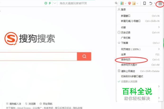 保存网页 随便打开浏览器的页面,然后点击右上方的【打开菜单】按钮,在弹出的下拉菜单中选择【保存网页】,如下图所示: