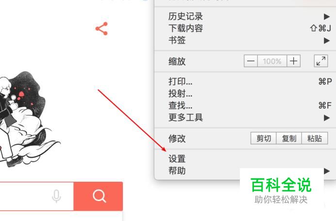 在下拉菜单上,点击‘设置’