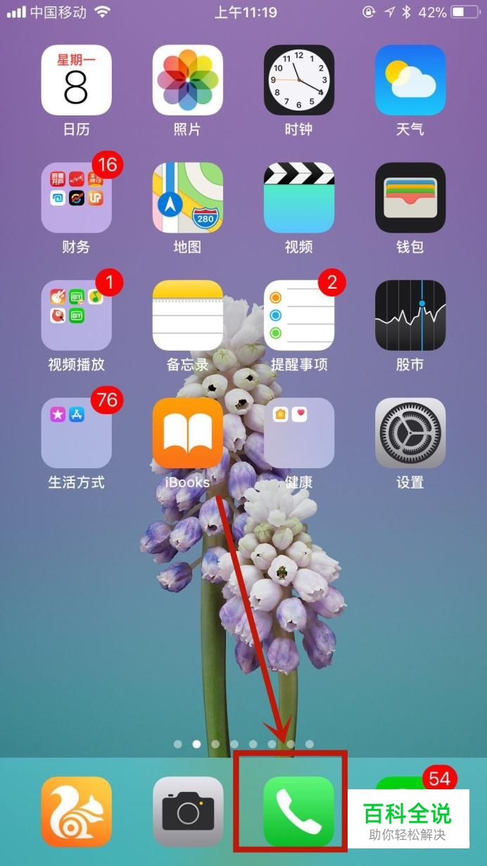 首先在我们的手机桌面上找到电话并点击它,如下图所示。