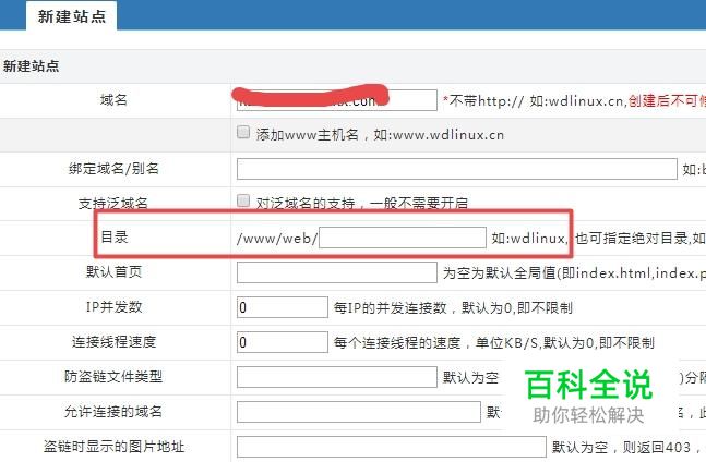 此处的目录是指网站的文件根目录,是必须填写的,目录的名字可以填写数字和英文