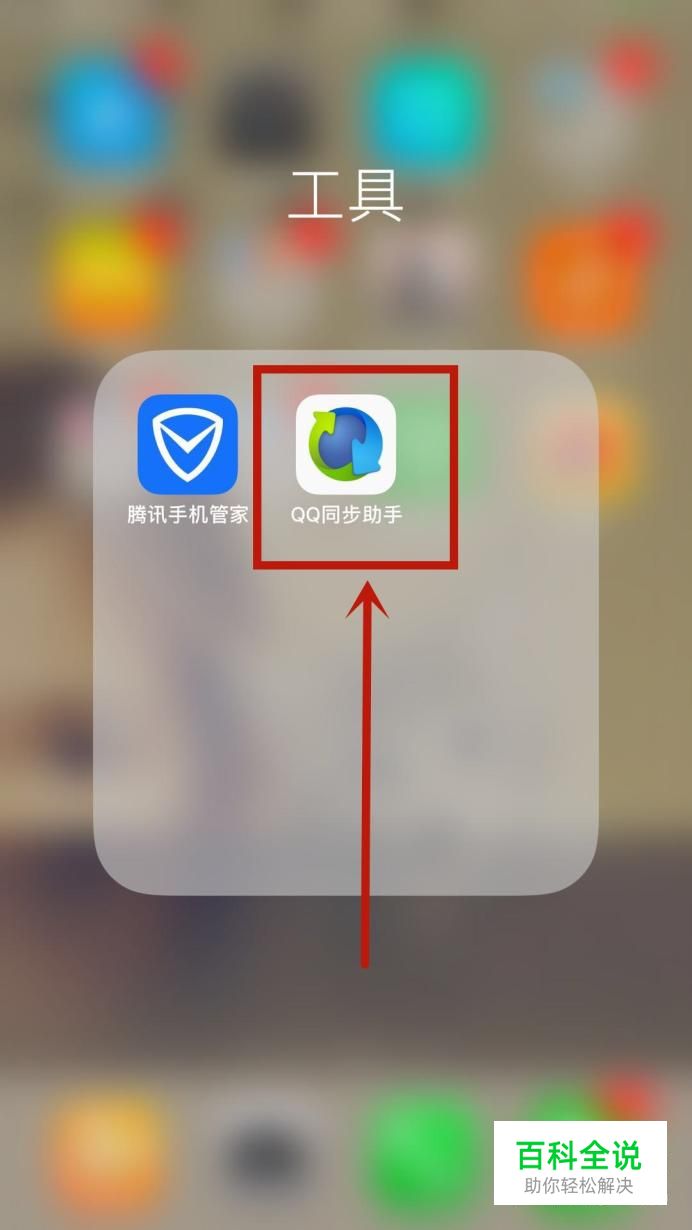 首先在手机桌面找到"QQ同步助手"并点击它,如下图所示。
