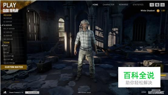 登录游戏: 首先我们登录steam,打开加速器,进入绝地求生大逃杀,选择任意一个服务器,根据人数选择模式。我这里选择的单人模式进入游戏。