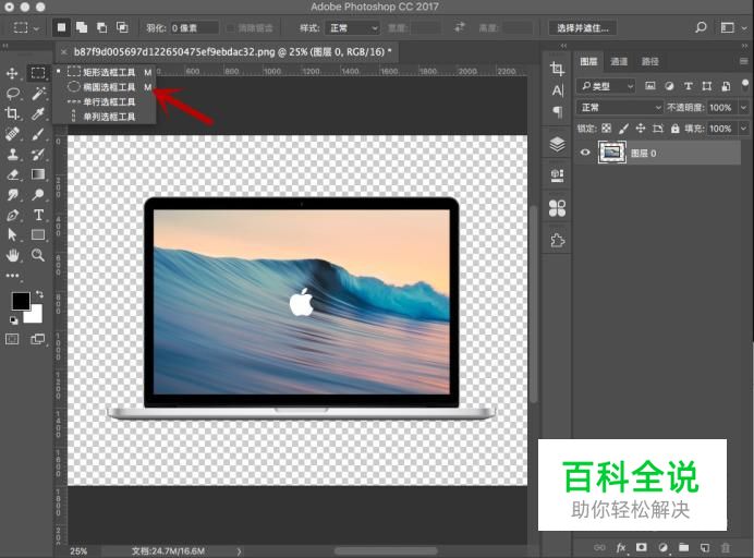 在工具栏中选择“矩形选取工具”,接下来准备框选选区。