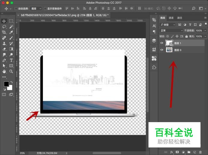 因为我们是加入了一个新图层,没有抠掉之前的图像,所以之前的背景图是仍然存在的,注意遮挡下边上,保证最终效果。