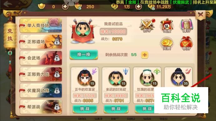 进入竞技界面,我们可查看个人排名等信息,下方为可进行挑战的对手,确认后点击“挑战”