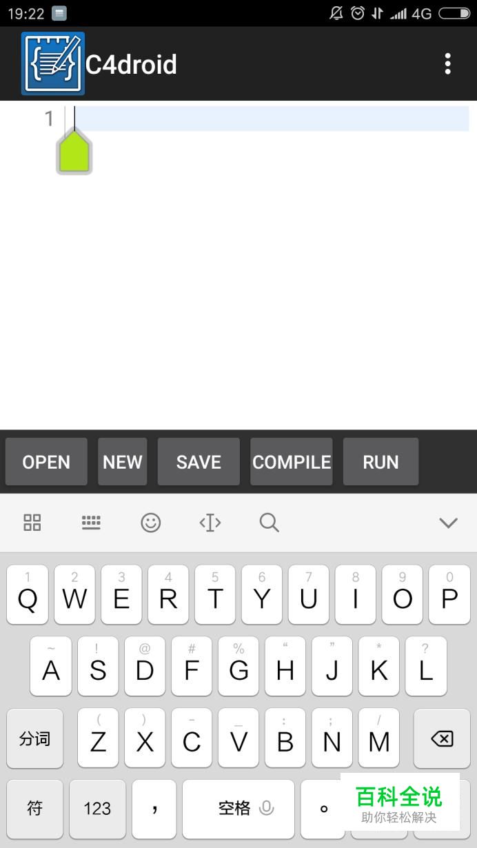 另外此软件额外的功能,可以点击“new”新建C语言程序和“open”打开手机里面的C语言程序。