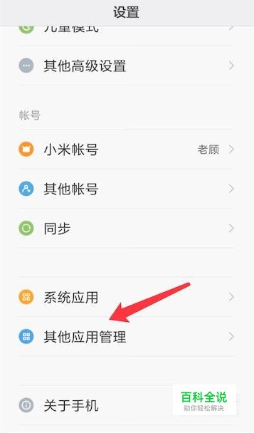 打开设置页面,点击上面的‘其他应用管理’