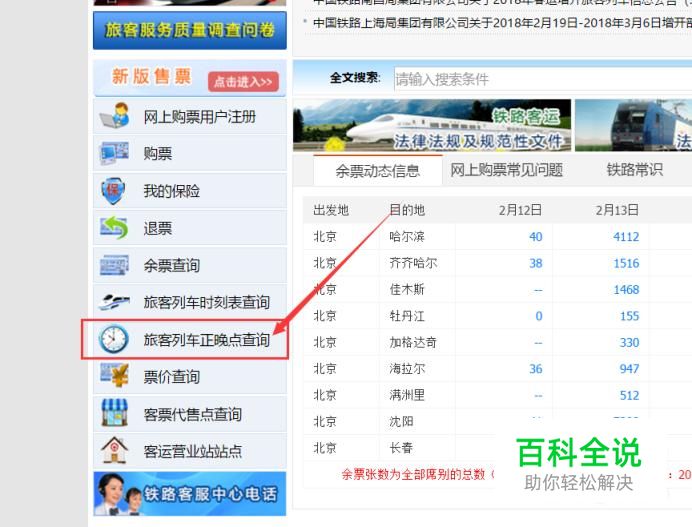 这里我们可以先试试在12306官网上查询,点击打开12306网站,在网站左侧页面中点击“列车正晚点查询”菜单。