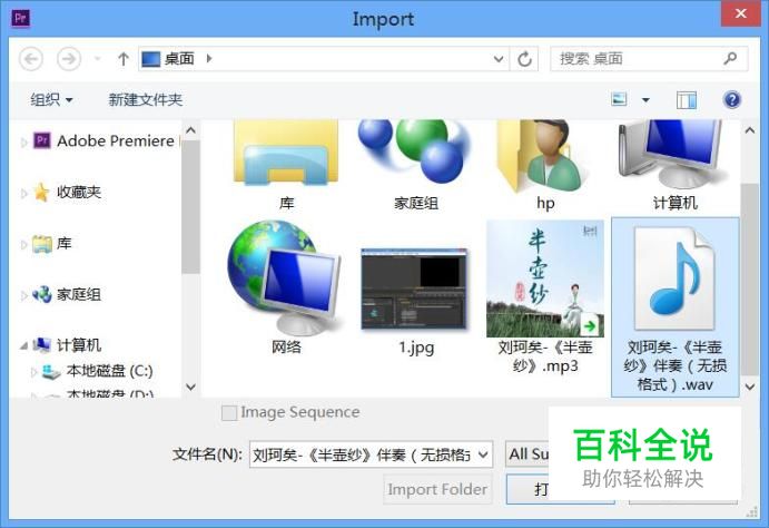 打开pr之后我们按下Ctrl+I键在弹出的对话框内找到我们背景音乐和视频文件,如图所示: