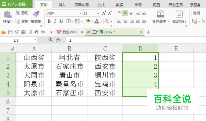 我们在打开的表格数据中,在最后一列后输入1,2,3,4,5。如图