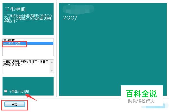 首先通过电脑上软件快捷方式,启动软件,此时一般会进入下图所示界面,选择“经典”后,单击“确定”即可,也可以勾选箭头所指选项复选框,下次启动软件不再提示。