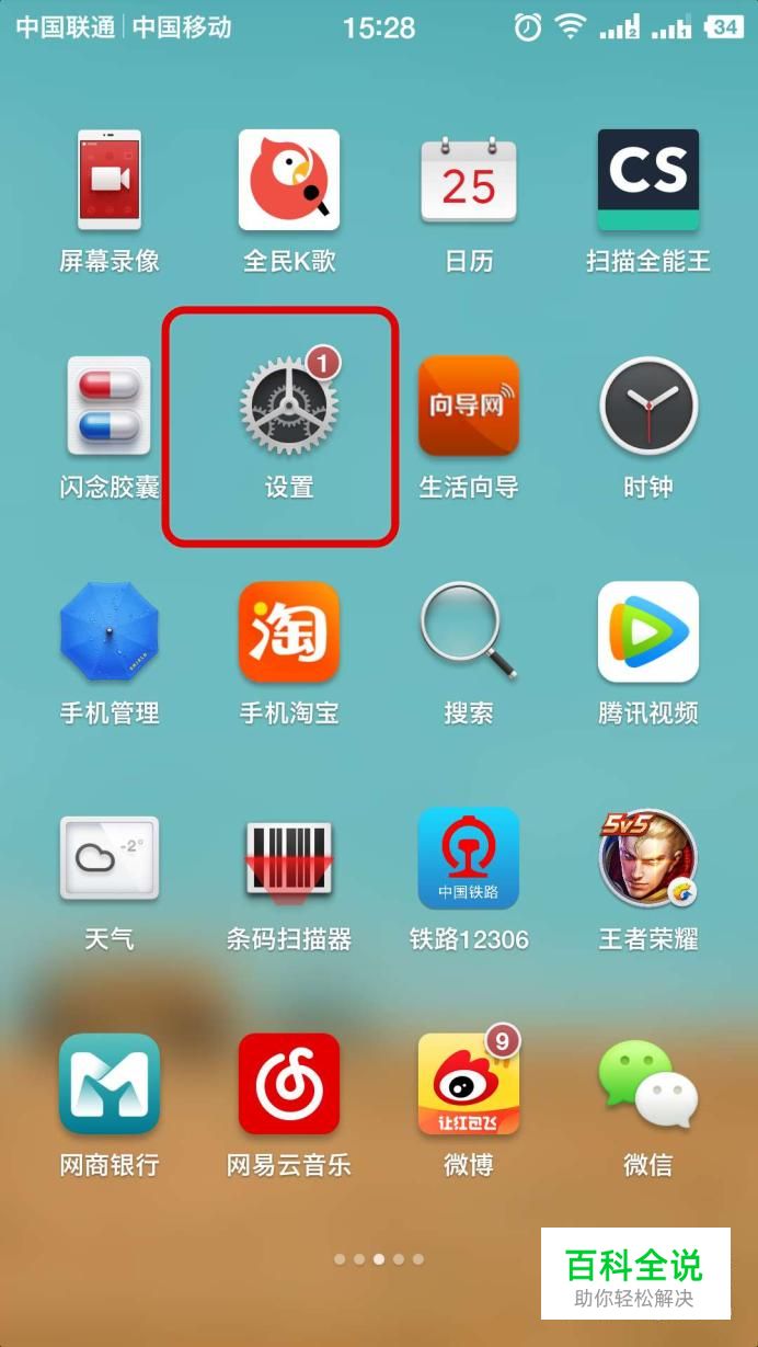 我们打开手机后,在手机中找到“设置”按钮,如图。