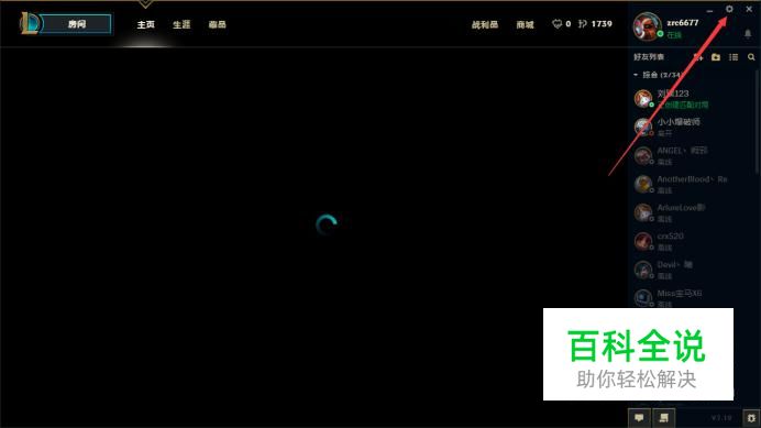 首先,我们登录到英雄联盟游戏客户端,在客户端页面上,点击右上角的“设置”图标,进入到英雄联盟设置。