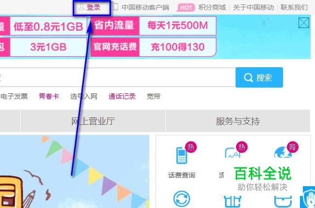 点击页面上方的“登录”后,点击“登录网上营业厅”;