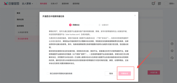 点击【西瓜服务管理】—申请开通—同意协议