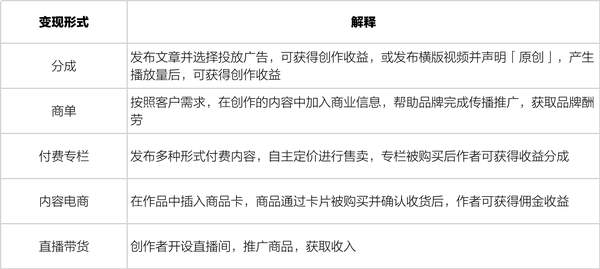 一. 今日头条上有哪些变现形式?