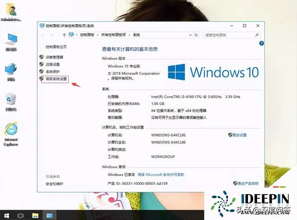 2.在系统属性界面的左侧点击高级系统设置,进入下一步。
