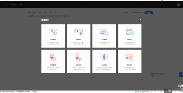网站搜索网易见外工作台,进入官网界面后,点击新建项目——语音转写。