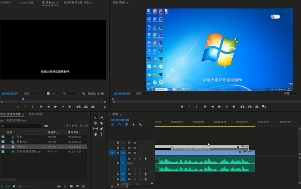 将UTF—8格式的文件导入至PR,拖拽至视频上方轨道。