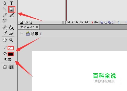 在工具箱内找到椭圆工具,将笔触颜色设置为无,填充色设置为黑色,如图所示: