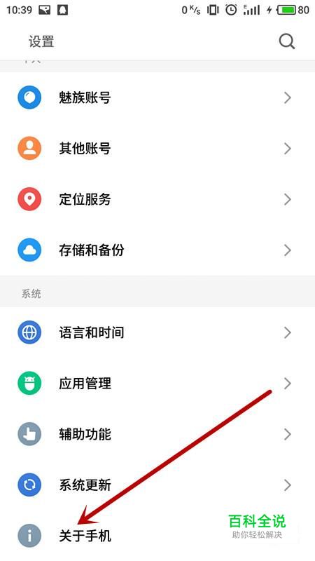 打开手机后,选择手机“设置”选项,进入设置界面,选择“关于手机”