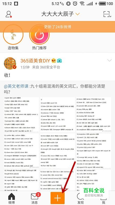 进入新浪微博首页,选择下方“+”