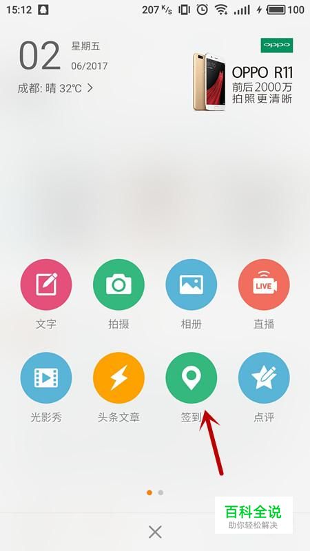 在弹框中,选择“签到”