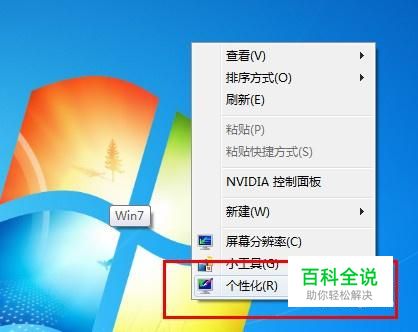 首先,将鼠标移动到桌面空白处,右击鼠标点击菜单中个性化选项;