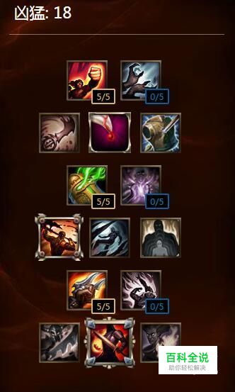 凶猛系18点,以狂怒-攻速起步,点到最后的战争热诚,这是18点天赋足够让EZ的被动技能得到最高的助力,即便是没有蓝,EZ依然可以通过高攻击和高攻速的平A伤害得到优势。