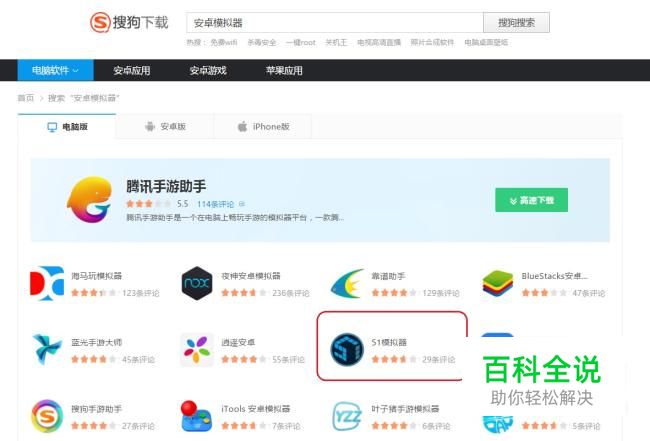 首先需要先下载安装一个安卓模拟器,可以在搜狗软件中心搜索一个,安装下载。