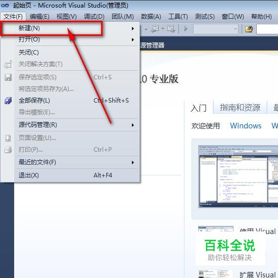 第一步,打开Microsoft Visual Studio 2010之后,点击“文件”——“新建”。