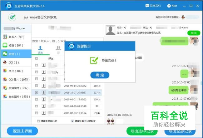 等待软件扫描完成后,我们点击软件左侧的“微信”按钮,我们就可以查看手机里的微信聊天记录,我们勾选出自己想要恢复的微信聊天记录,点击“导出选中记录”那么我们的微信聊天记录就可以得到恢复了。