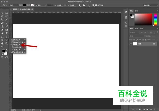 在左侧工具栏中,右键点击“矩形工具-椭圆工具”