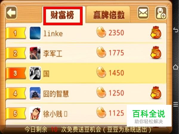 进到里面游戏,操作时,移动鼠标进到里面红色框之间的图标,进到里面好友财富榜;