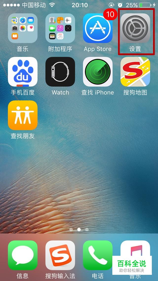 在手机桌面找到设置,点击进入;