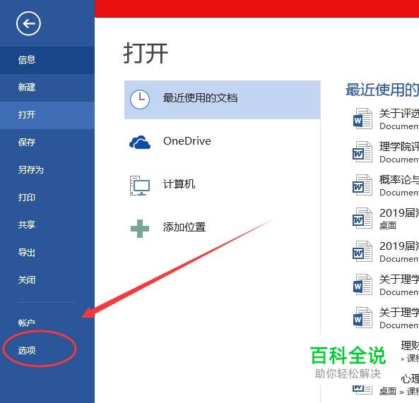 进入后点击左上角的文件按钮进入图中所示界面,选择“选项”。