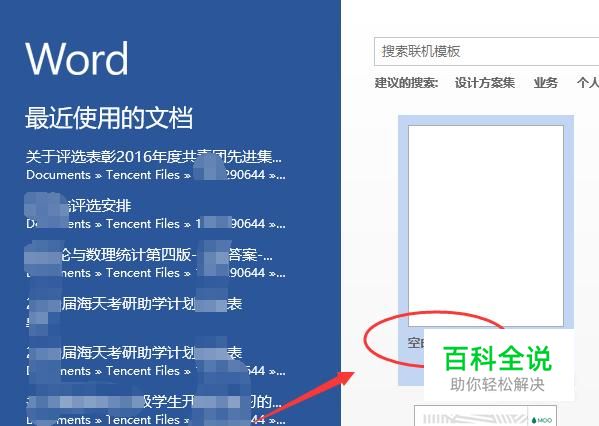 打开桌面上的word,我们可以看见在首页左端出现了相应的历史记录,在右侧新建空白文档。