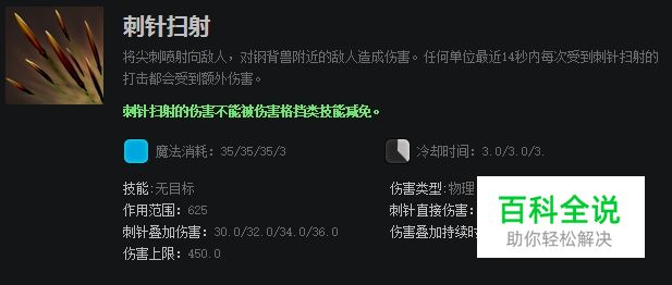刺针扫射是钢背兽以自身为圆心对身周进行攻击,钢针的伤害能够叠加,最大伤害不超过450。