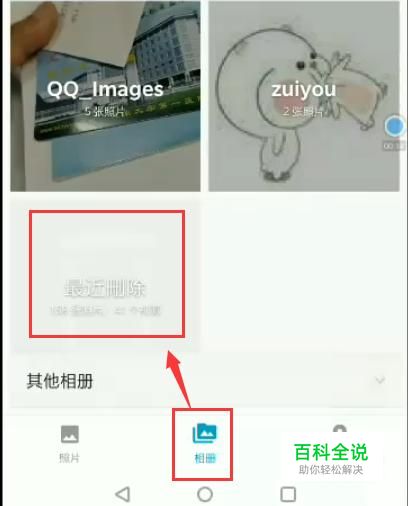 如果照片没彻底删除,我们可以通过相册找到最近删除。