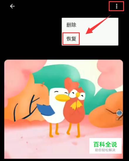 点击进入后,选择想要恢复的照片,点击右上角三个点的符号,选择恢复。