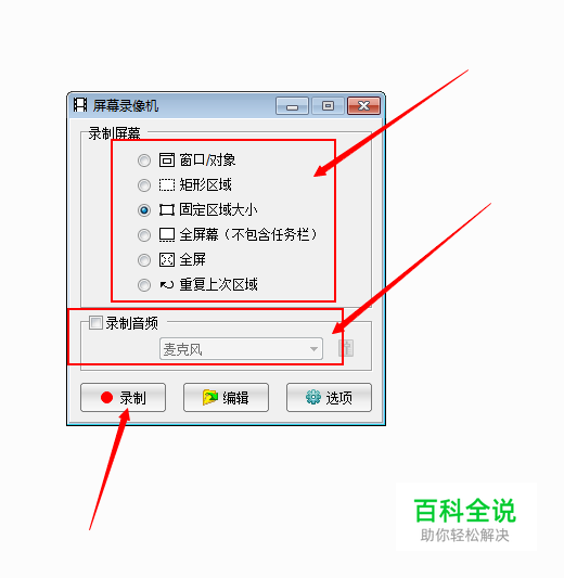 如图所示,我们可以设置录屏区域的大小,并且是否录制音频。确定录屏之后,点击“录制”。